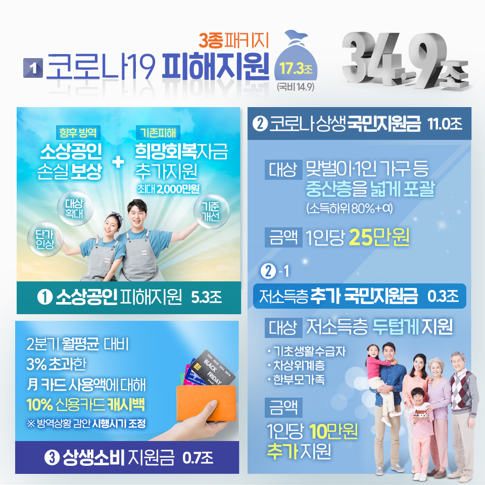 1인당 25만원을 받을 수 있습니다. 4인 가족 기준으로는 100만 원을 받을 수 있습니다. 작지 않은 금액으로 코로나로 힘들 시기를 넘기는데 조금이라도 도움이 될 것으로 기대됩니다.