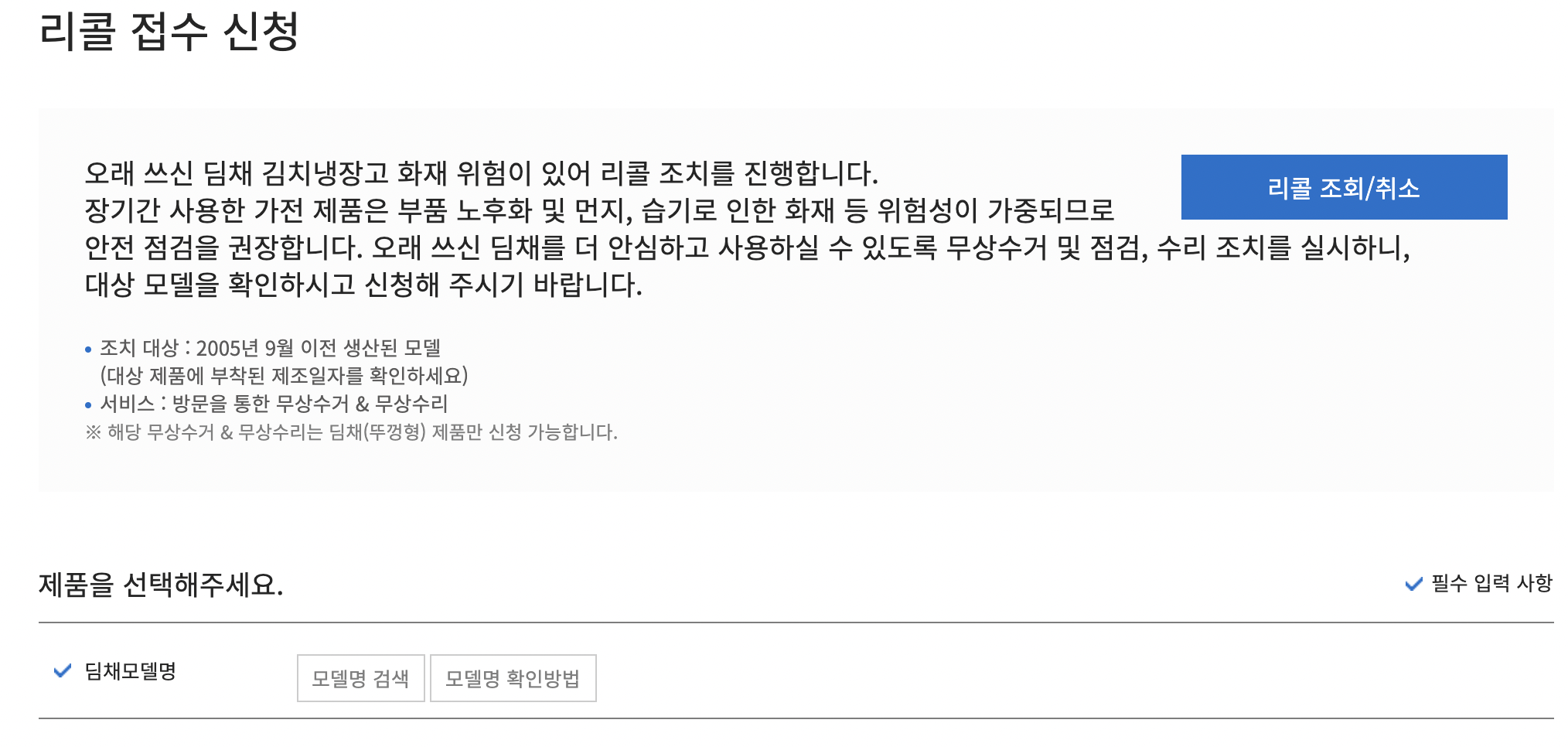 딤채 리콜 신청하는 방법 | 화재 예방 필수