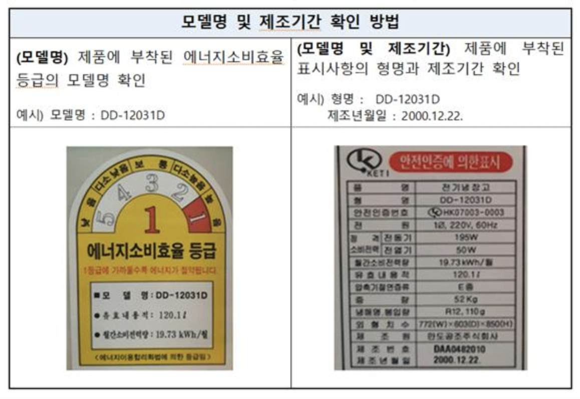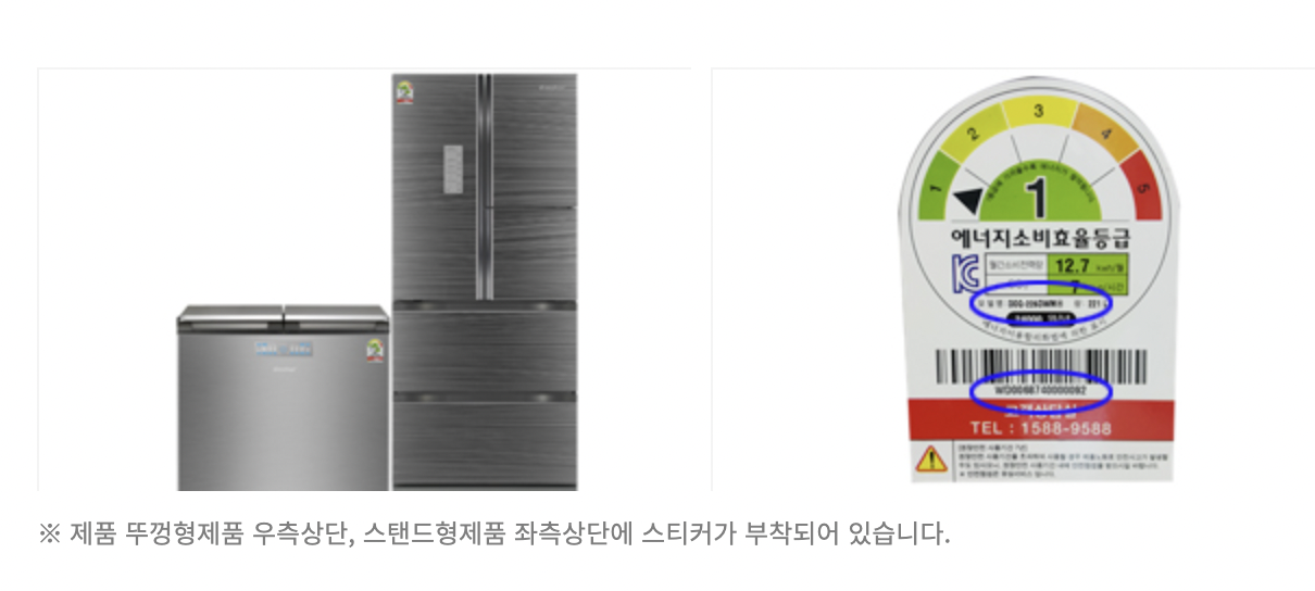 먼저 딤채에 있는 모델명을 확인합니다. 모델명은 보통 딤채의 옆면에 바코드와 함께 기재되어 있습니다. 이 모델명으로 문의하면 리콜대상인지 여부를 알 수 있습니다. 2005년 9월 이전 생산된 모델은 모두 리콜 대상이니 참고하세요.