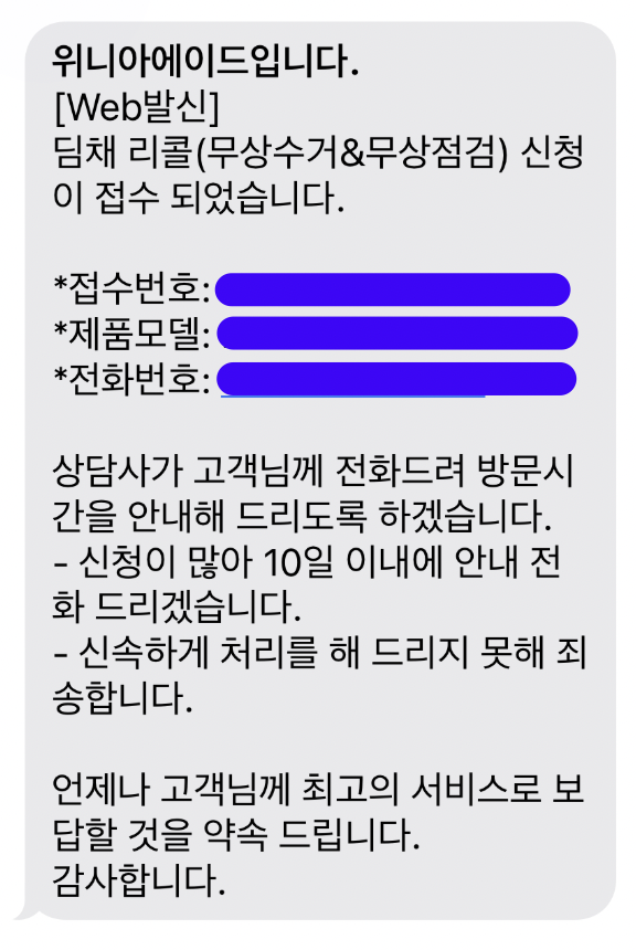 이상으로 모든 신청이 끝났습니다. 하루라도 빨리 신청해서 빨리 조치하세요. 특히 부모님 댁 딤채는 모델명만 확인하면 대신 홈페이지로 신청할 수 있으니 반드시 신청해야 하겠습니다.