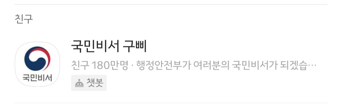 혹은 카카오톡 친구추가에서 "국민비서 구삐"를 찾아서 친구추가를 해도 됩니다.