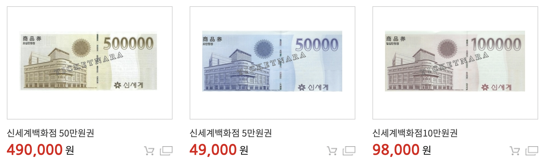 이 시세를 보다가 저렴할 때 구매하거나, 중고나라, 번개장터, 당근마켓 등에서 저렴하게 나올때 구매해도 되겠습니다. 그런데 구매할 때 스크래치형으로 구매해야 쓱머니 충전이 용이하다는 점 참고하세요.