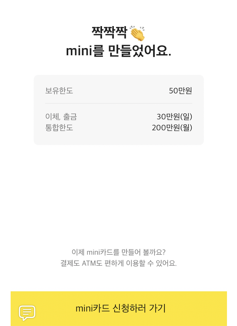 카카오 미니카드 발급조건