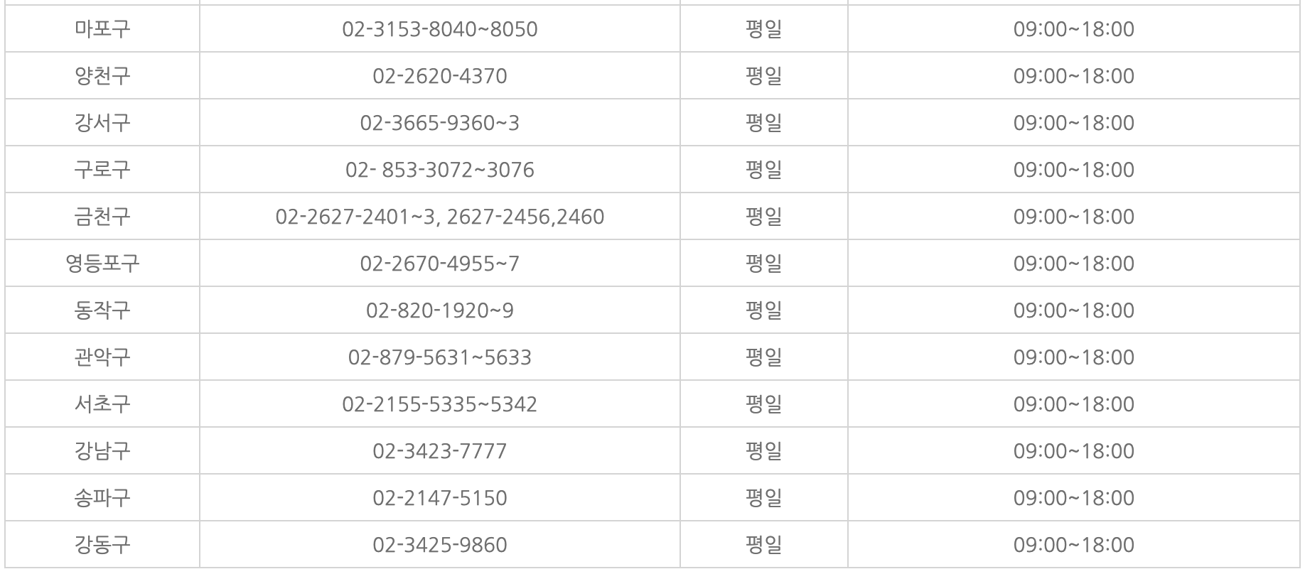 서울시 각 자치구별로 예방접종 관련 콜센터 전화번호는 아래와 같습니다.