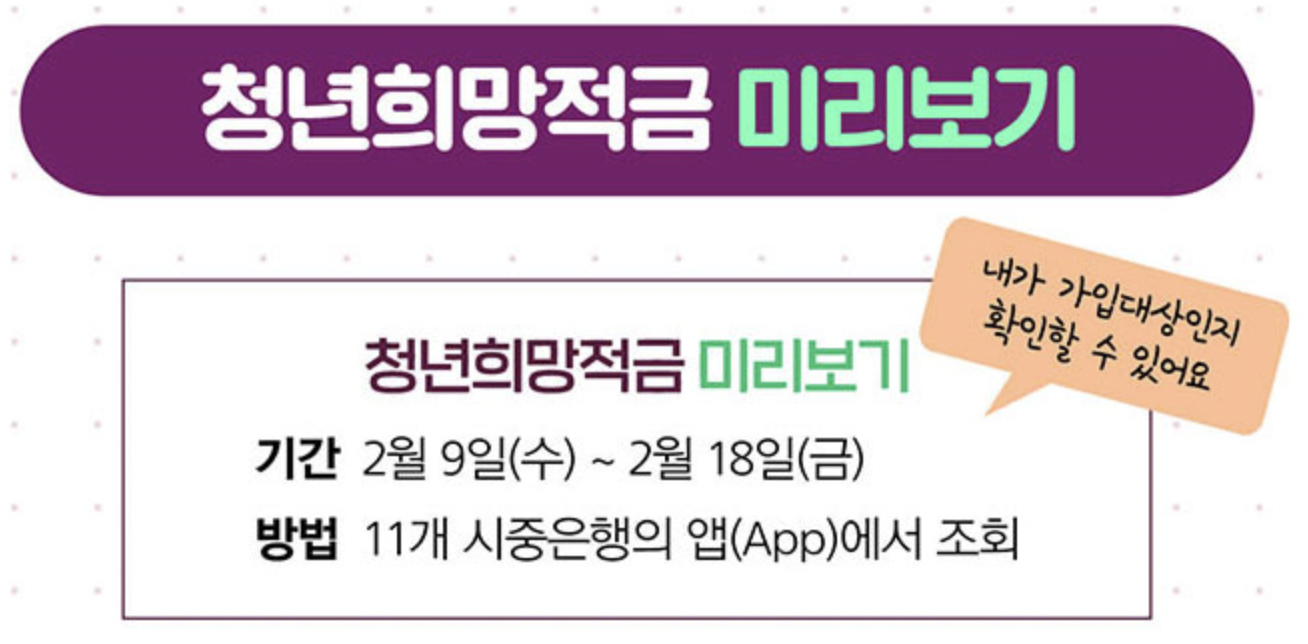 ■ 청년희망적금 가입 전 최종 안내 2.21(월) 청년희망적금이 출시됩니다.