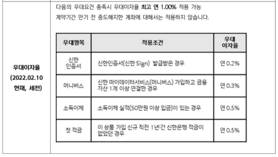 신한은행 우대금리 조건