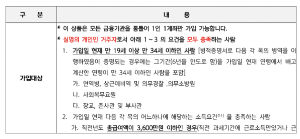 ※ 가입대상자로 선정되었음에도 금융소득종합과세 대상자이거나 만34세를 초과한 후(생일을 포함하여 그 이후) 신청하시면 가입이 거절될 수 있습니다. 또한, 가입 이후 국세청 소득 검증을 통해 과세 전환 또는 납입중지 처리될 수 있습니다.