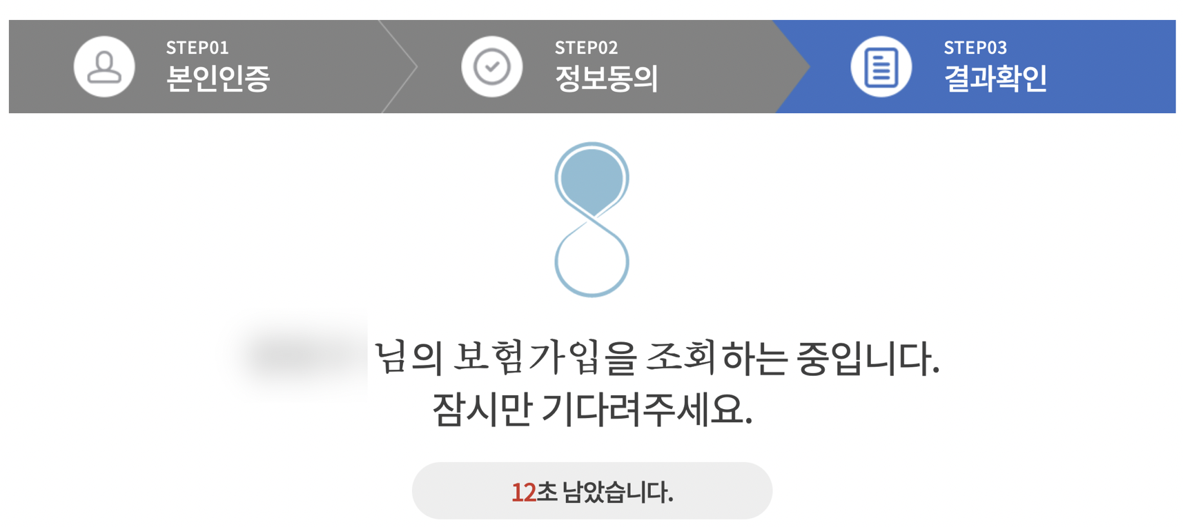 얼마간의 시간이 지난후에 내가 가입한 보험 내역이 조회가 됩니다.