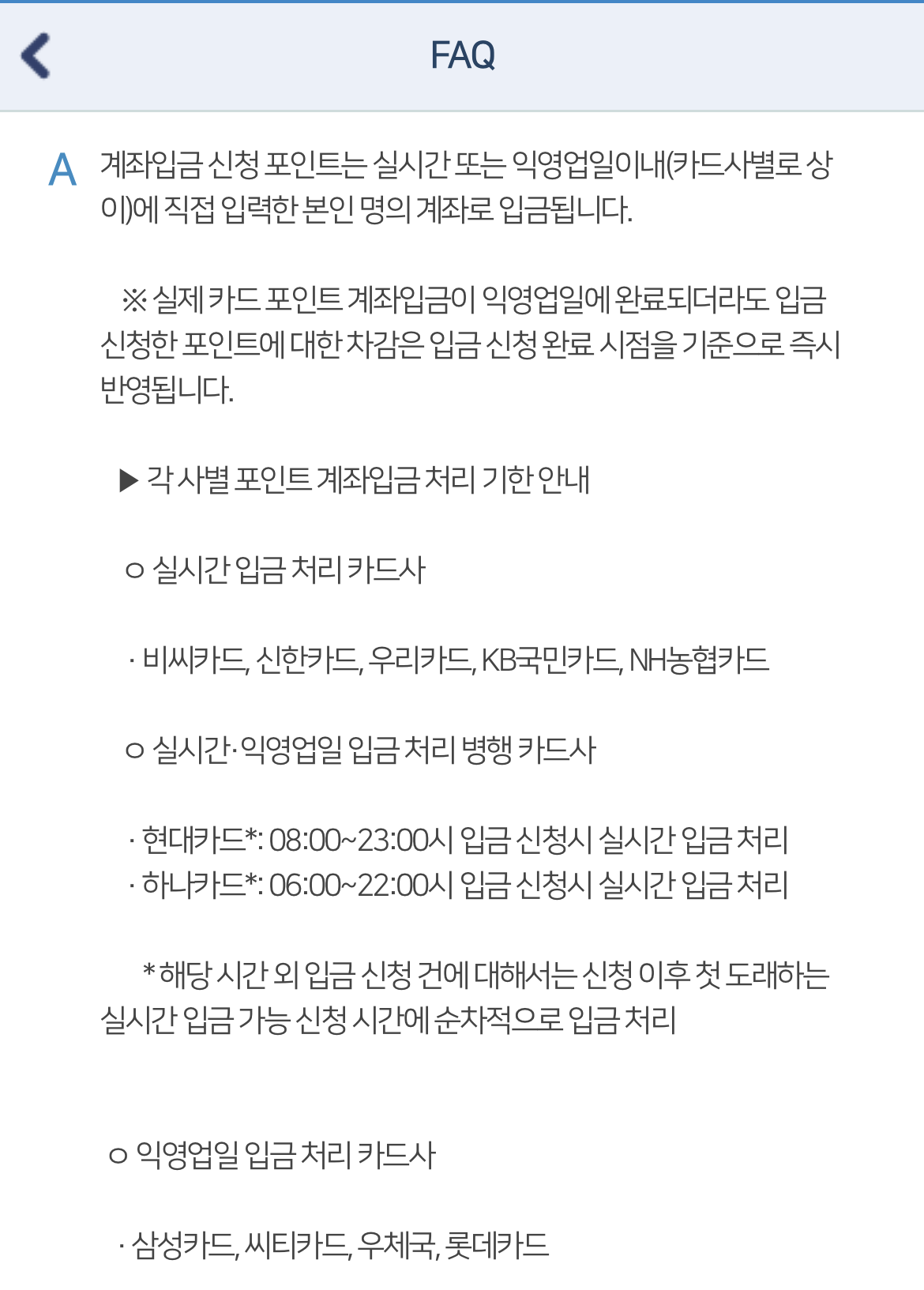 이름하여 카드 포인트 통합조회 계좌입금 서비스이다.