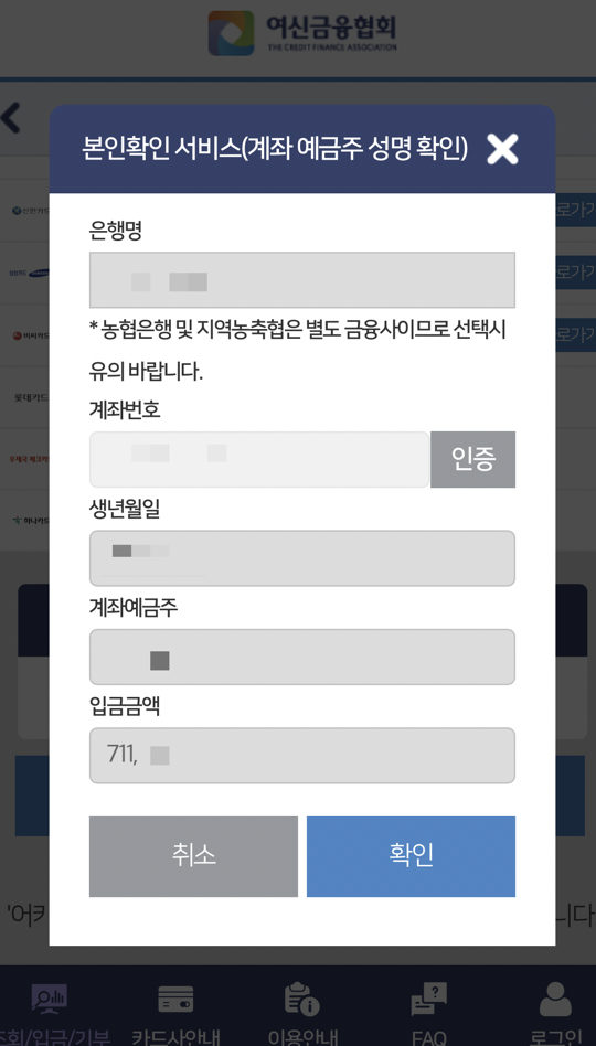 여기에서 계좌 인증하고 확인 버튼을 누르면,