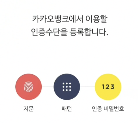 카카오뱅크에서 이용할 인증수단 중에 자신이 편리한 것으로 설정합니다.