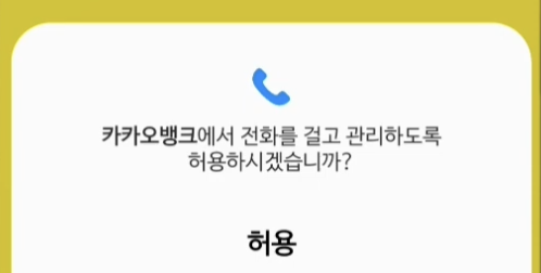 그리고 아래와 같이 카카오뱅크에서 전화를 걸고 관리하도록 허용하시겠습니까? 에 허용을 클릭합니다.