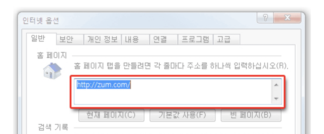 어느 날부터 zum이라는 포털 사이트가 시작 페이지로 나오는 경우가 있습니다. 갑자기 어제까지만 해도 네이버나 다음이 열렸는데, 웬 줌 시작페이지가 뜨다니요. 줌이든 뭐든 내가 설정한 시작페이지가 변경되었다는 것은 뭔가 잘 못된 것입니다.