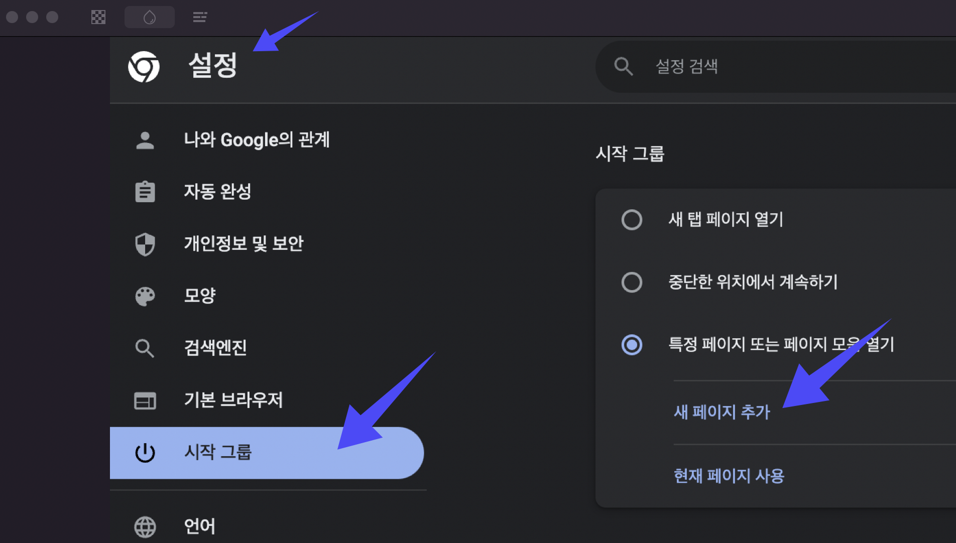 크롬 시작페이지 변경 방법
