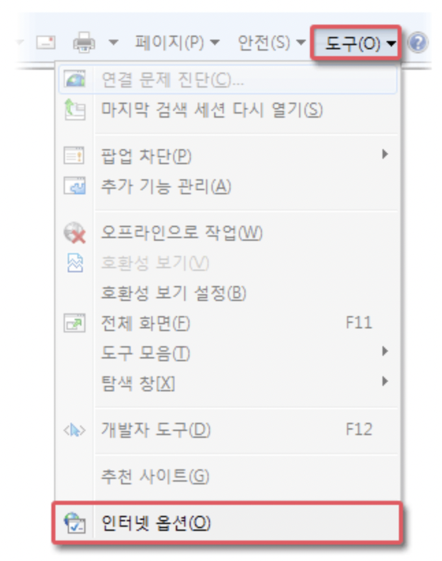 도구 - 인터넷 옵션 -