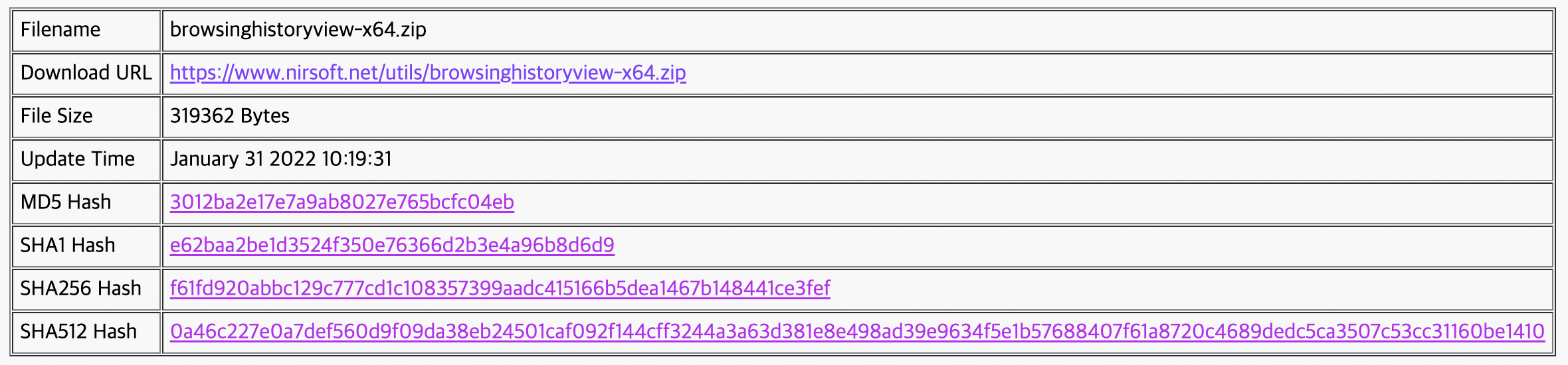 이 프로그램의 용량과 hash 값을 통해 위변조 되지 않은 프로그램인지 확인하여 다운로드한 파일은 아래에서 받을 수 있습니다.