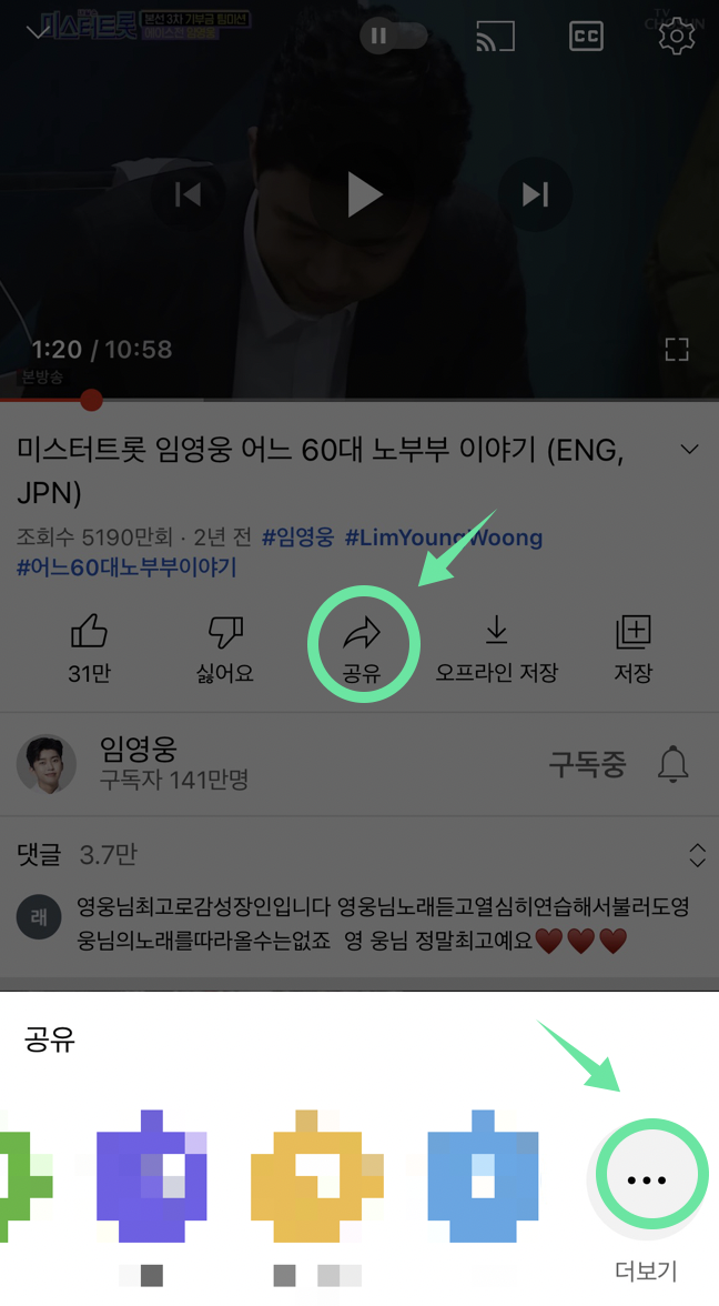 - 유튜브 영상 하단 공유 버튼 클릭