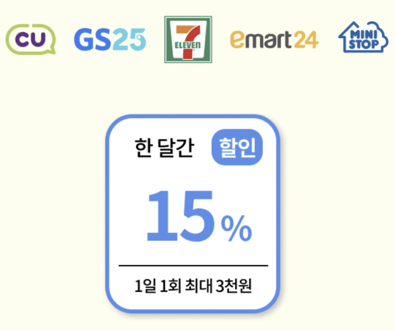 정말 꿀 혜택이라 할 수 있네요. 특히 편의점의 경우 15% 할인이 된다는 것이 큰 장점입니다.