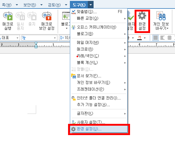이것을 없애기 위해서는 한글 메뉴의 설정에 들어갑니다.