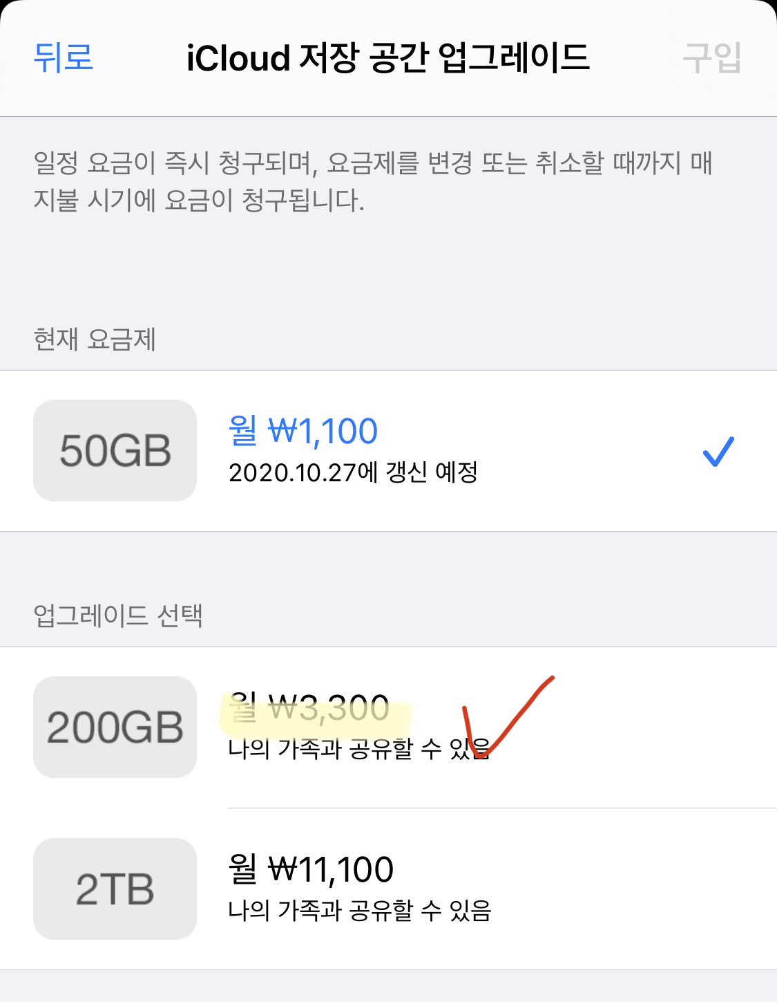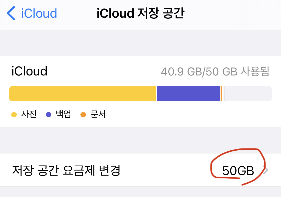 이렇게 아이클라우드 공간 업그레이드는 완료가 됩니다.