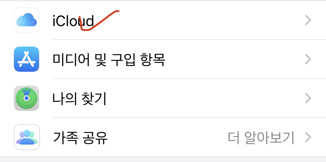 다음 화면에서 아이클라우드를 선택합니다.