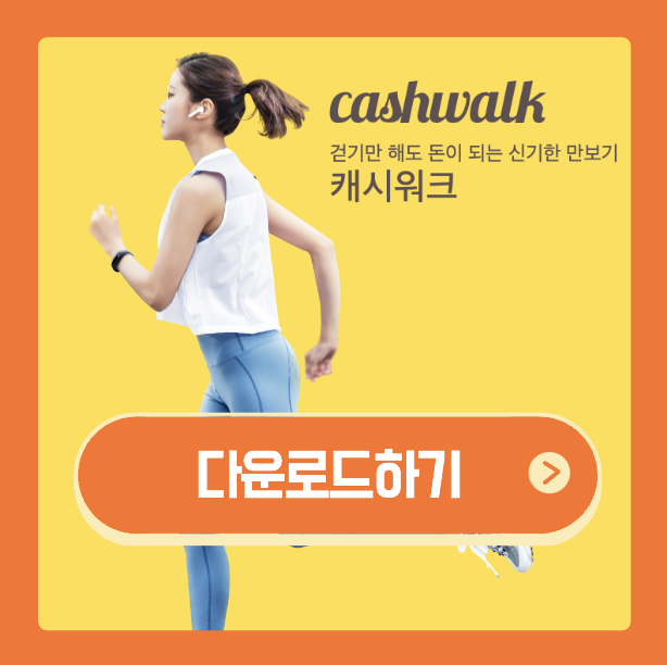 금번 소개한 캐시워크 앱테크는 걷기만 해도 돈이 되는 만보기 애플리케이션입니다. 다운로드는 아래의 링크를 통해서 할 수 있습니다.