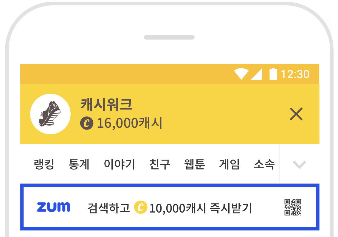 그런데 이렇게 만보기로 돈을 벌 수 있는 것뿐만 아니라 zum 검색을 하면 1만 캐시도 준다고 합니다.