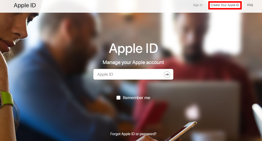 다음은 Manage Your Apple ID를 클릭하고 Create Your Apple ID를 클릭합니다.