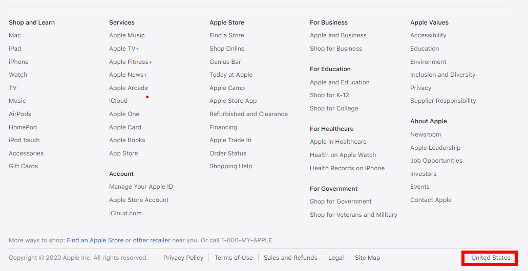 맨 아래로 내려서 국가를 미국으로 변경합니다.