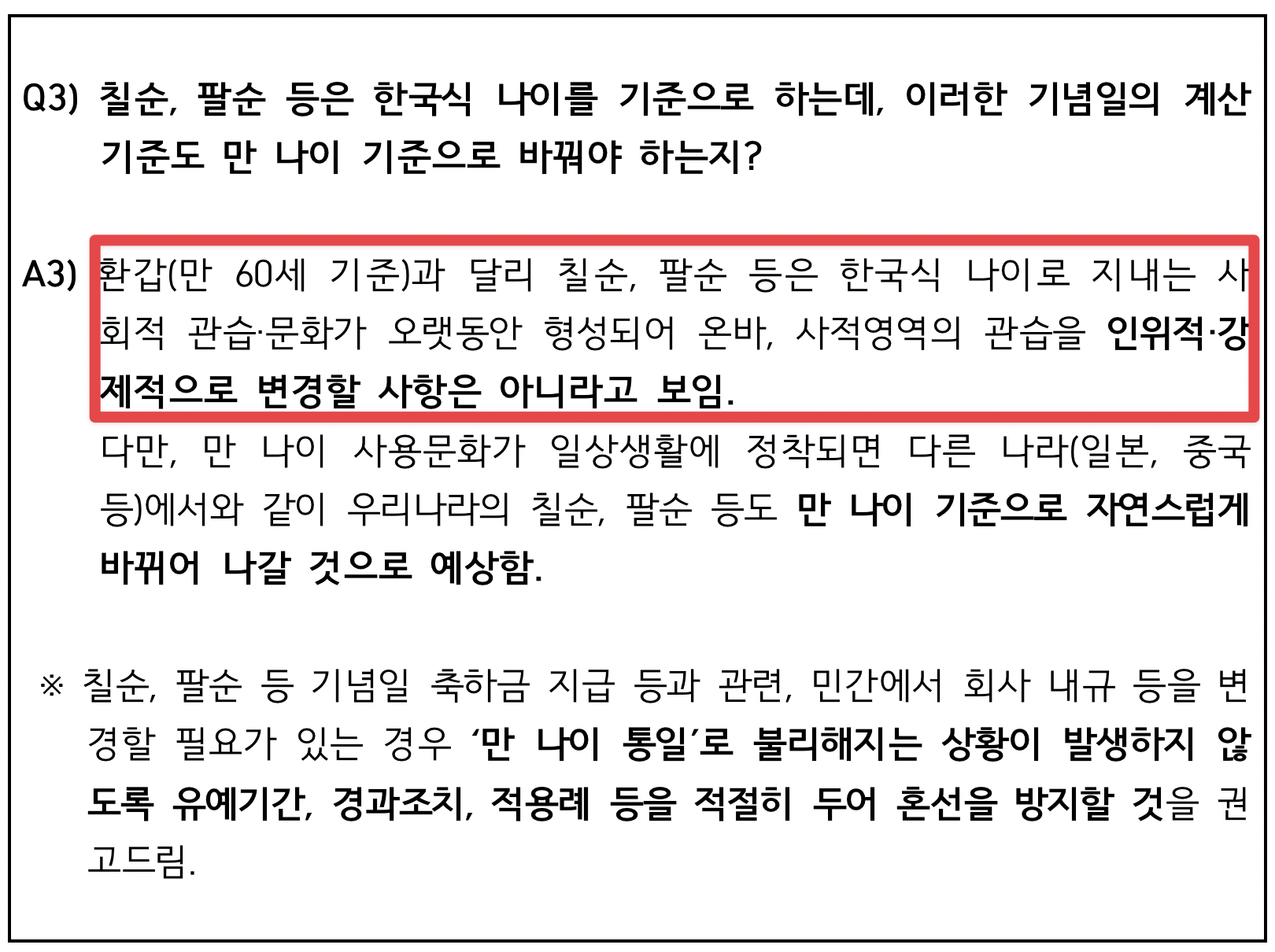 우리나라 통념상 칠순과 팔순은 한국식 연나이를 기준으로 하는데 이런 것들은 어떻게 될까요?