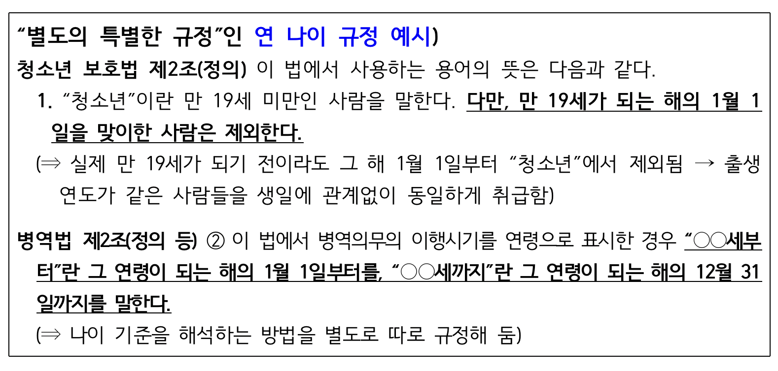 대표적으로 청소년보호법과 병역법이 그렇습니다.