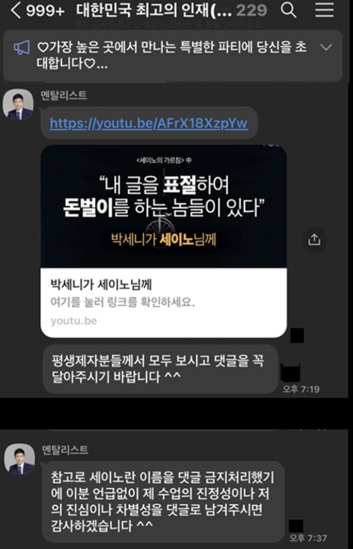박세니가 예전에 팔았던 3시간에 50만 원짜리 강의를 들었던 사람은