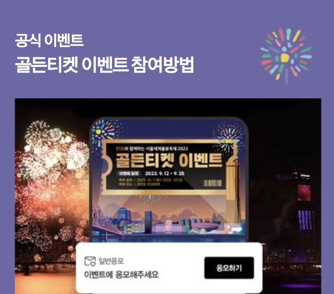 2023 서울 세계 불꽃축제가 10월 7일 토요일 저녁에 개최된다. 연인과 가족과 이날만을 기다리는 사람이 많았나 보다. 100만 인파가 몰릴예정이라고 한다. 불꽃놀이를 볼 수 있는 곳, 불꽃축제를 느낄 수 있는 곳 중에 어디를 선택해야 명당자리가 될지, 3가지 조건을 따져서 알아보자. 일 년에 한 번 서울에서 있는 국내 최대 불꽃 축제 후회는 없이 즐겁게 즐기자.