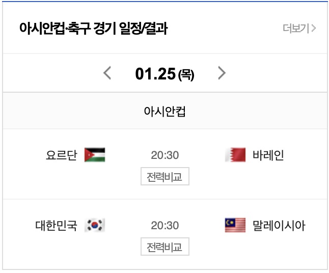 - 1월 16일 (화): 말레이시아 대 요르단 (02:30 예정)