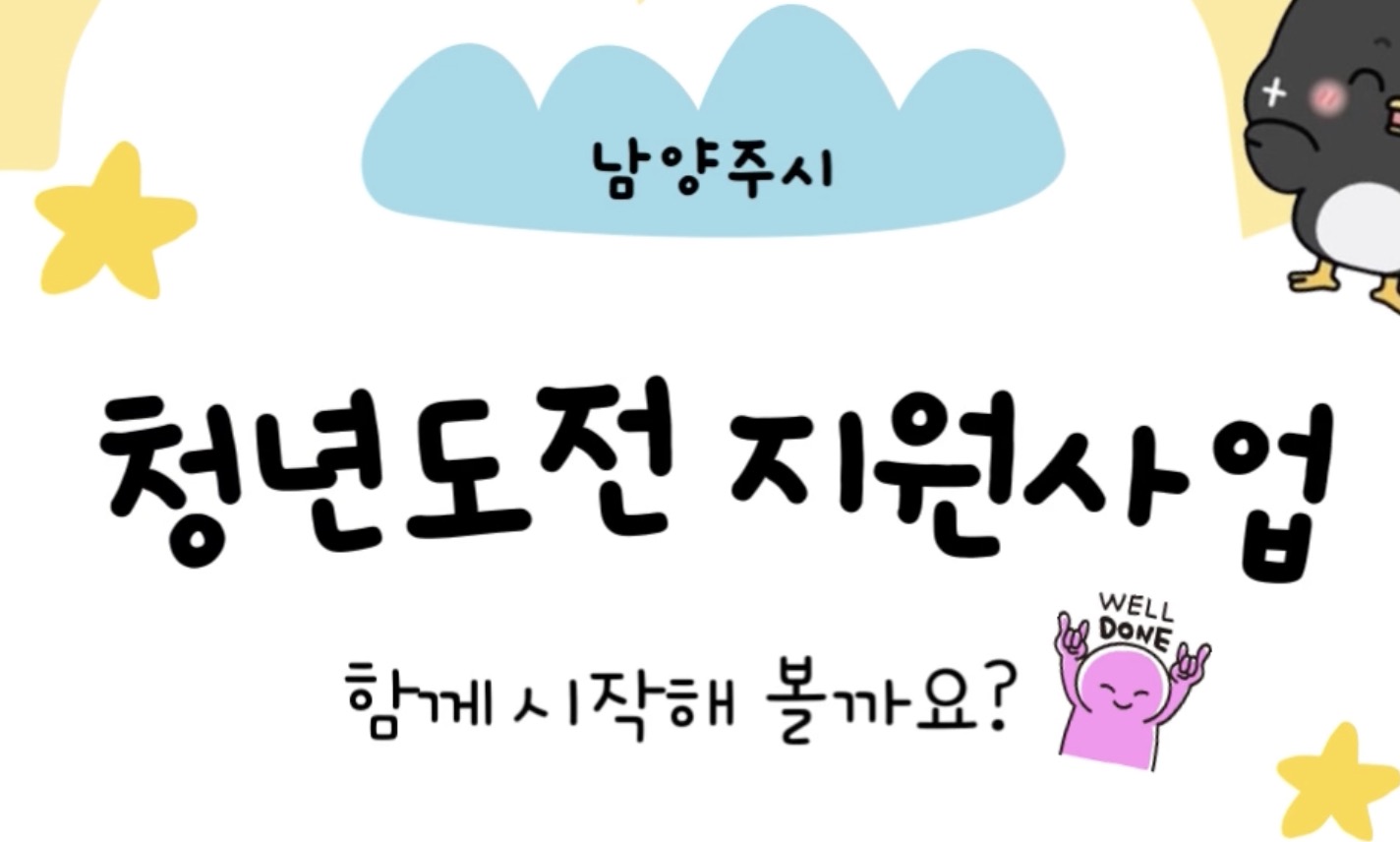 취업 준비에 어려움을 겪고 있는 청년 여러분, 남양주시의 청년도전지원사업에 참여하여 자신감을 회복하고 취업 역량을 강화해보세요. 다양한 프로그램과 지원이 여러분의 도전을 응원합니다. 관심 있는 분들의 많은 참여 바랍니다!