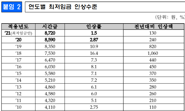 아래 표에서 보면 이번에 인상률이 역대 최저 인상이었네요.