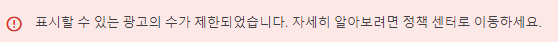 "표시할 수 있는 광고의 수가 제한되었습니다"라는 메시지를 보니 또? 왜지? 별 생각이 다 듭니다.