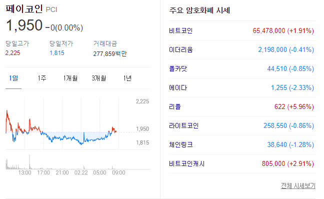 아직 페이코인을 가입하지 않았다고 하더라도 오늘 가입하면 바로 오늘 시세가 적용이 됩니다. 1 페이코인이 1,950원이므로 5페이코인은 9,750원입니다. 게다가 2021.02.08 ~ 2021.02.28 기간에 가입할 경우 아메리카노 무료쿠폰도 증정한다고 하네요.