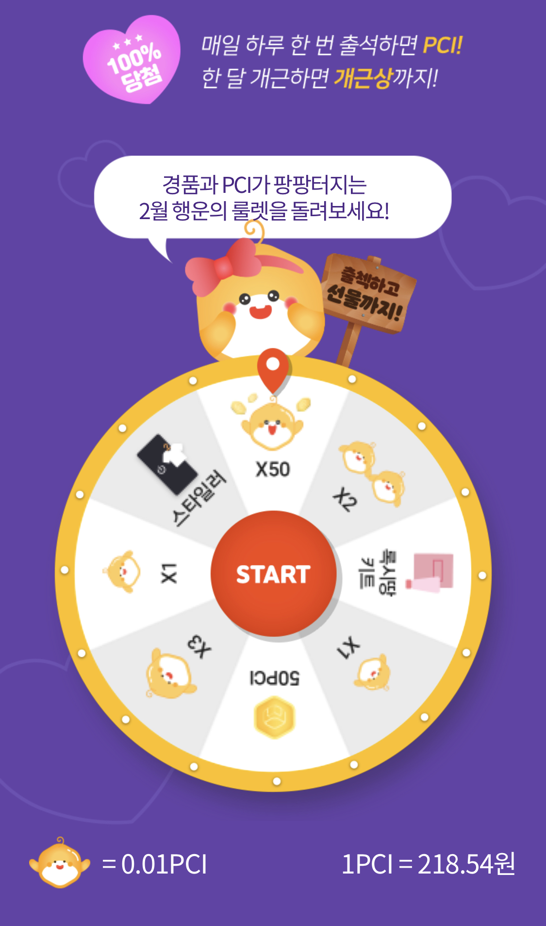 만나서 반가워 잘 부탁해(만만잘부) 이벤트는 매일 룰렛을 돌리는 이벤트입니다. 스타일러, 록시땅 키트 등을 줍니다. 꽝은 없고 0.01 PCI 를 주니 하루하루 페이코인을 모을 수 있어요.
