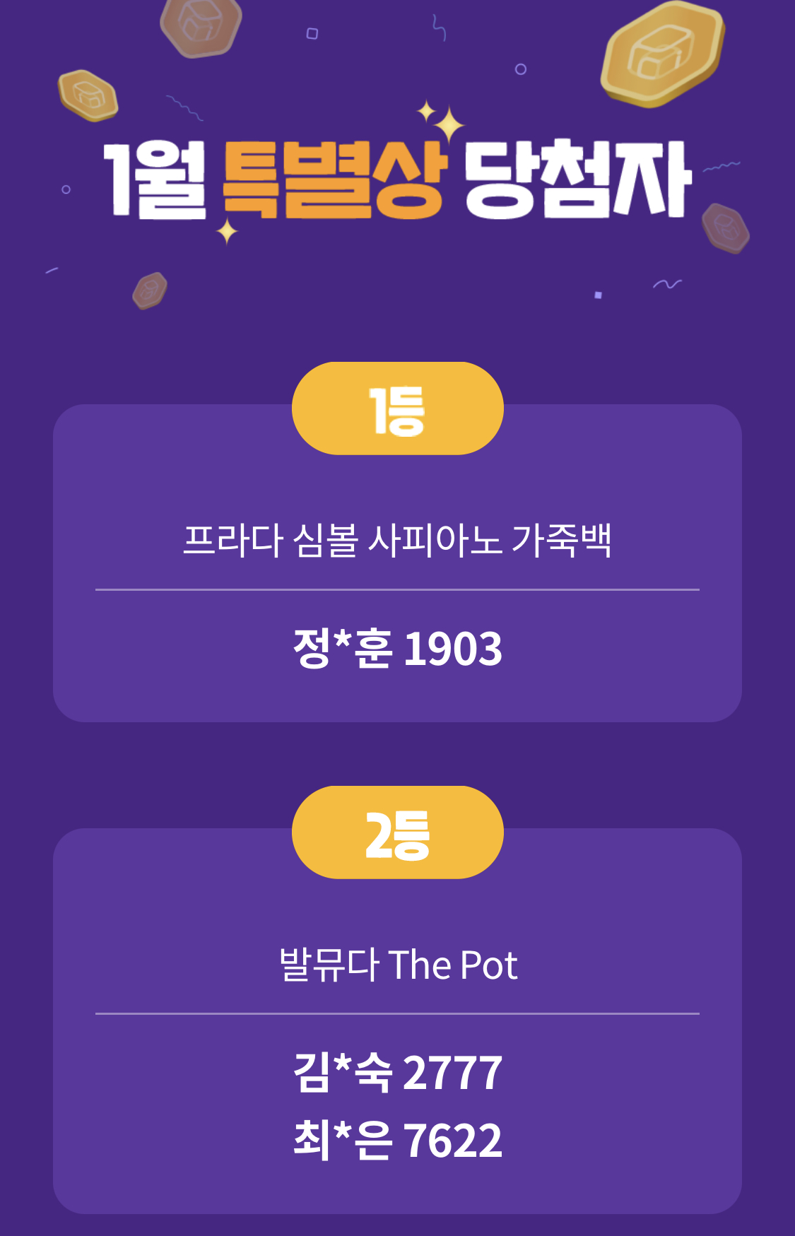 지난달에는 사피아노 가죽 백이 개근상이었는데 받은 사람 부럽네요. 매달 개근상으로 1등 상을 받은 사람은 인터뷰가 매달 홈페이지에 공지가 되는데 2월에는 개근을 꼭 해봐야겠습니다. 오늘 가입한 분들은 3월부터 개근에 도전하면 됩니다. 3월 개근상은 상품으로 뭐가 나올지 기대가 되네요.